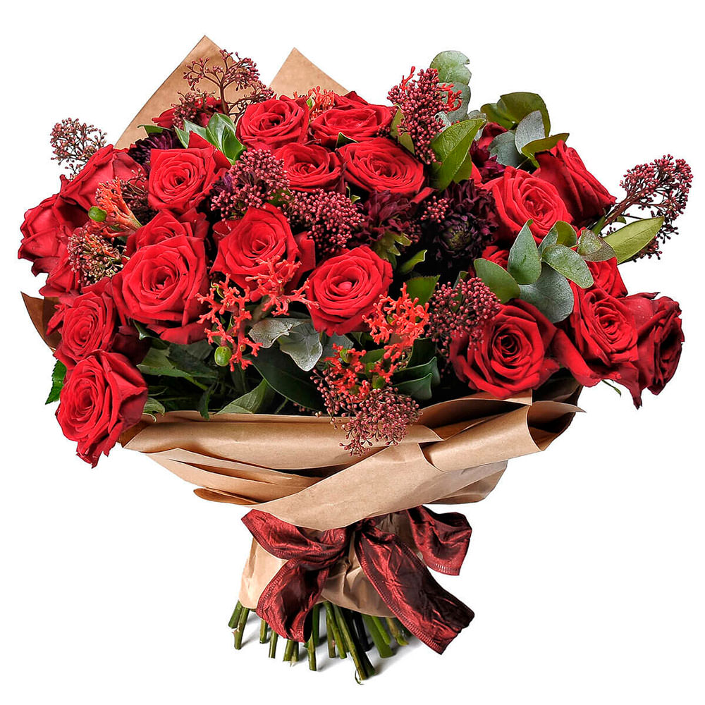 На фото представлен образец. Объем букета зависит от выбранного вами размера. Точное количество цветов и цветовую гамму вы можете уточнить у менеджера по телефону.