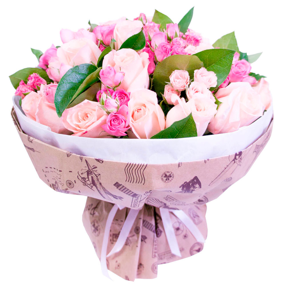 На фото представлен образец. Объем букета зависит от выбранного вами размера. Точное количество цветов и цветовую гамму вы можете уточнить у менеджера по телефону.