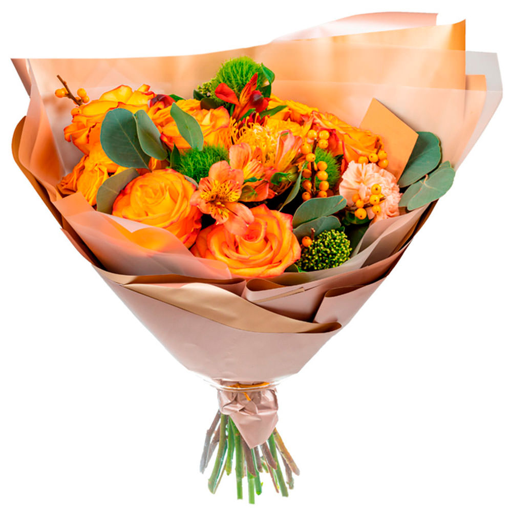 На фото представлен образец. Объем букета зависит от выбранного вами размера. Точное количество цветов и цветовую гамму вы можете уточнить у менеджера по телефону.