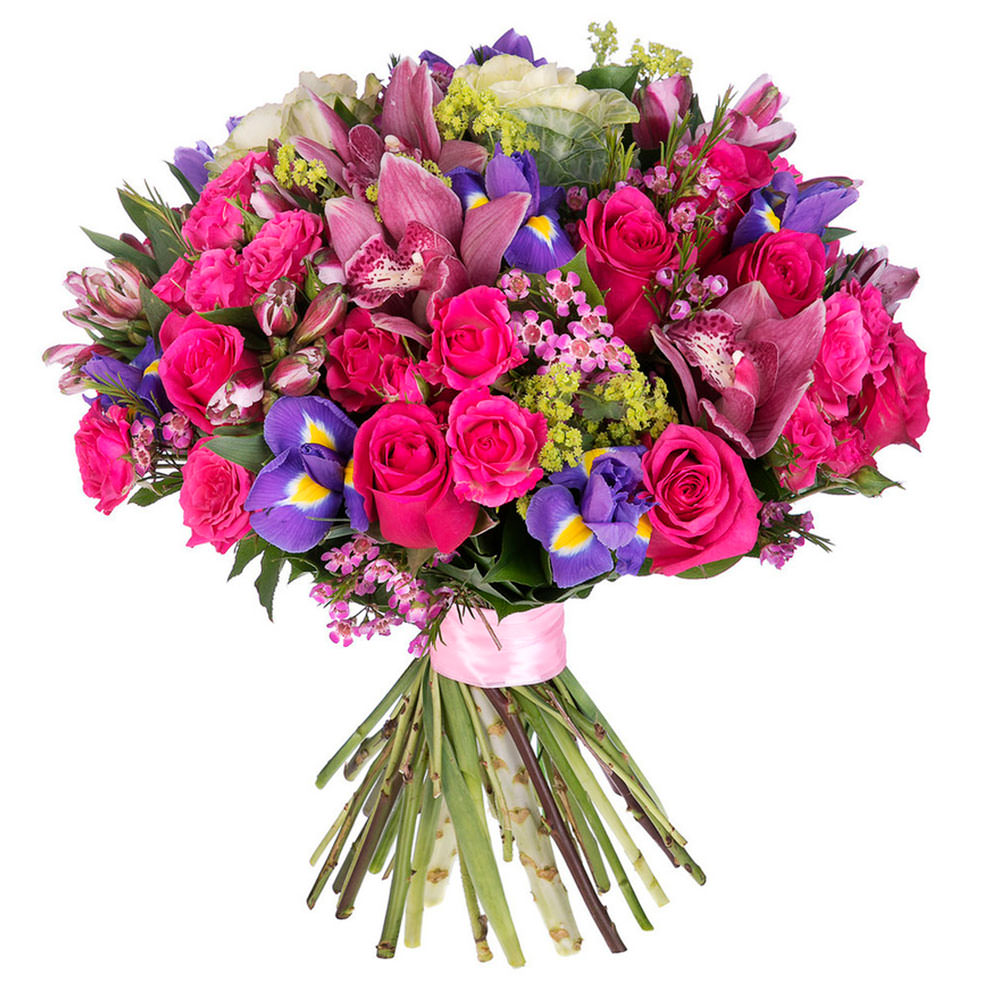 На фото представлен образец. Объем букета зависит от выбранного вами размера. Точное количество цветов и цветовую гамму вы можете уточнить у менеджера по телефону.