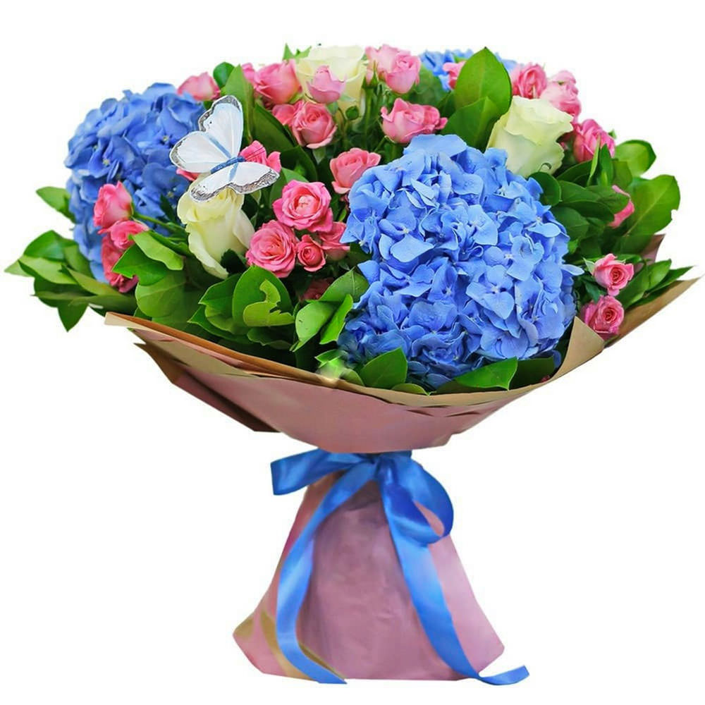 На фото представлен образец. Объем букета зависит от выбранного вами размера. Точное количество цветов и цветовую гамму вы можете уточнить у менеджера по телефону.