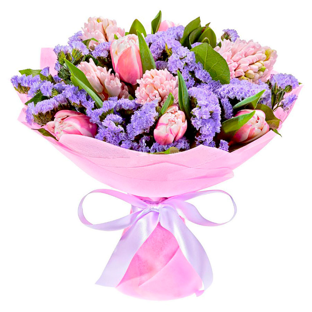 На фото представлен образец. Объем букета зависит от выбранного вами размера. Точное количество цветов и цветовую гамму вы можете уточнить у менеджера по телефону.