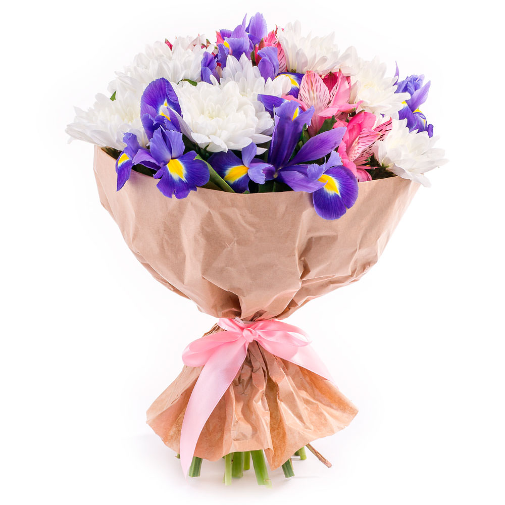 На фото представлен образец. Объем букета зависит от выбранного вами размера. Точное количество цветов и цветовую гамму вы можете уточнить у менеджера по телефону.