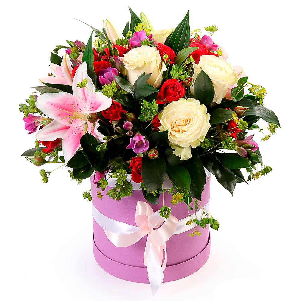 На фото представлен образец. Объем коробки зависит от выбранного вами размера. Точное количество цветов и цветовую гамму вы можете уточнить у менеджера по телефону.