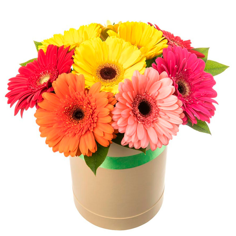 Цветы в коробке «Микс гербер»