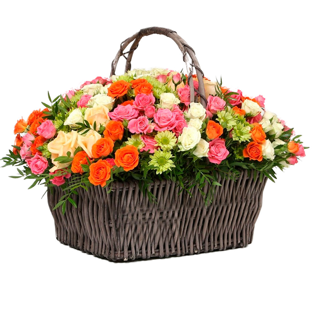 На фото представлен образец. Объем коробки зависит от выбранного вами размера. Точное количество цветов и цветовую гамму вы можете уточнить у менеджера по телефону.